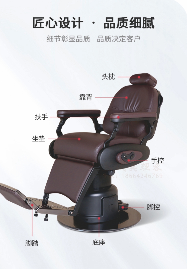 多功能电动理发椅、美发椅,美容、剪发、护理三合一型号:B-213(热销款)尺寸:长154*宽67(坐垫宽52)*高56~70cm描述:1、2个电机控制高度、背部和腿部联动升降; 2、不锈钢底板; 3、可旋转脚踏; 4、头部插枕可调节高度; 5、床体可左右旋转135°;
