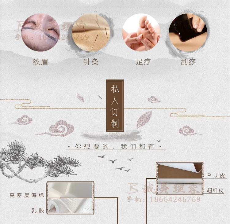 ①每款美容床、按摩床床面和床架可以自由组合、搭配;